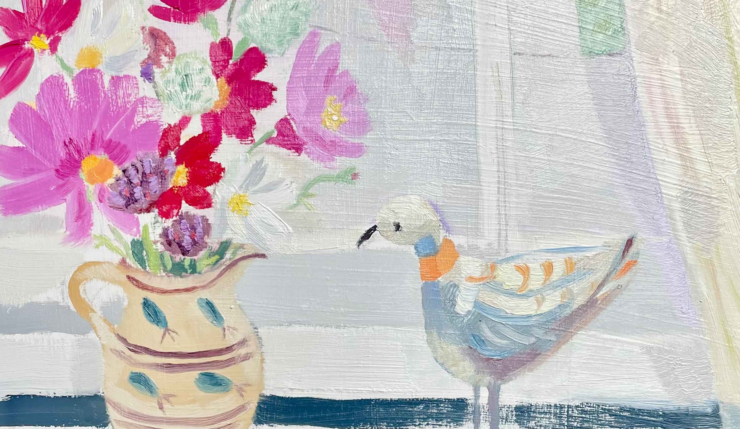 Seeking above all to capture the presence of her surroundings, Gabriella tends to work in an immediate and intuitive manner: her paintings are characterised by rapid brushstrokes, simplified form, and a joyful freshness of colour which she uses to create light and space. Gabriella has been gently influenced by artists including Christopher Wood and Gwen John and the lyrical tradition to which they belong.